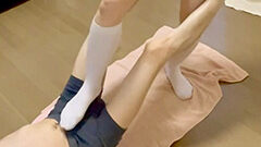パンツを脱がせ、容赦ない生チン電気あんまをする梨央!