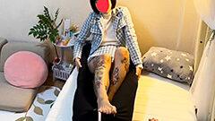 おさななじみのうさぎちゃん。気が合うし明るくいい子なんだけど…○っぱらうと開放的になりすぎる悪癖が…クリスマスということで調ちゃんの家で宅飲みしてたんだけどだんだん○っぱらってきたご様子…嫌な予感してきたのでそろそろ解散かと思ってた時に「この前の電気按摩とかも楽しかったしさぁ、飲みに行ったのも楽しかった」とか言い出した!そうこうしてる内にこたつの中で足を延ばして俺の股間をまさぐってきやがった!もっと本格的に電気アンマを掛けたいらしく「壁にベルを掛けてあるからあれを鳴らせたら止めてあげるw」と言い出すwうさぎちゃんは言い出したら聞かない子だし、なんなら手を伸ばせばベルが鳴らせるしと思いOKしたのが間違いの始まりだった…ベルに手を伸ばそうとすると逃がさないように引っ張って手が届かないようにするうさぎちゃん「あんたの気持ちいい場所わかっちゃったから逝かせてあげるね」と言いどこに電気アンマを掛ければ逝かせられるか完璧に分かったご様子小さい頃からやられてたうさぎちゃんの電気アンマで何度も逝かされるハメに… ※本編顔出し